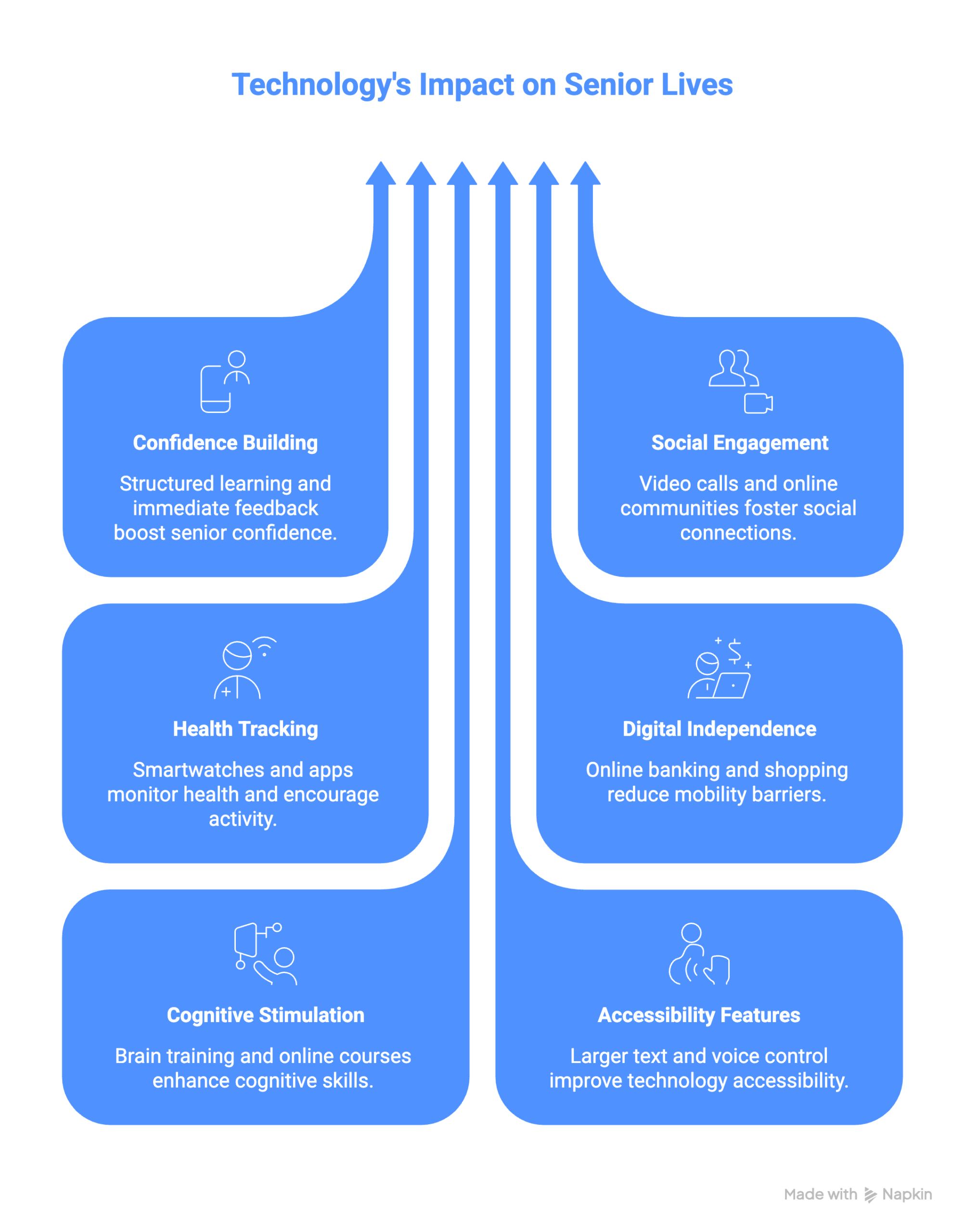 As visualized in the chart below, the impact of tech adoption on senior lives is both significant and multifaceted.